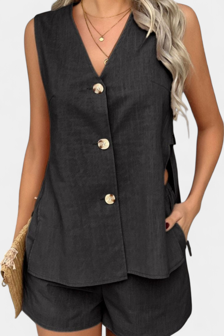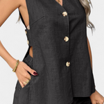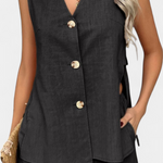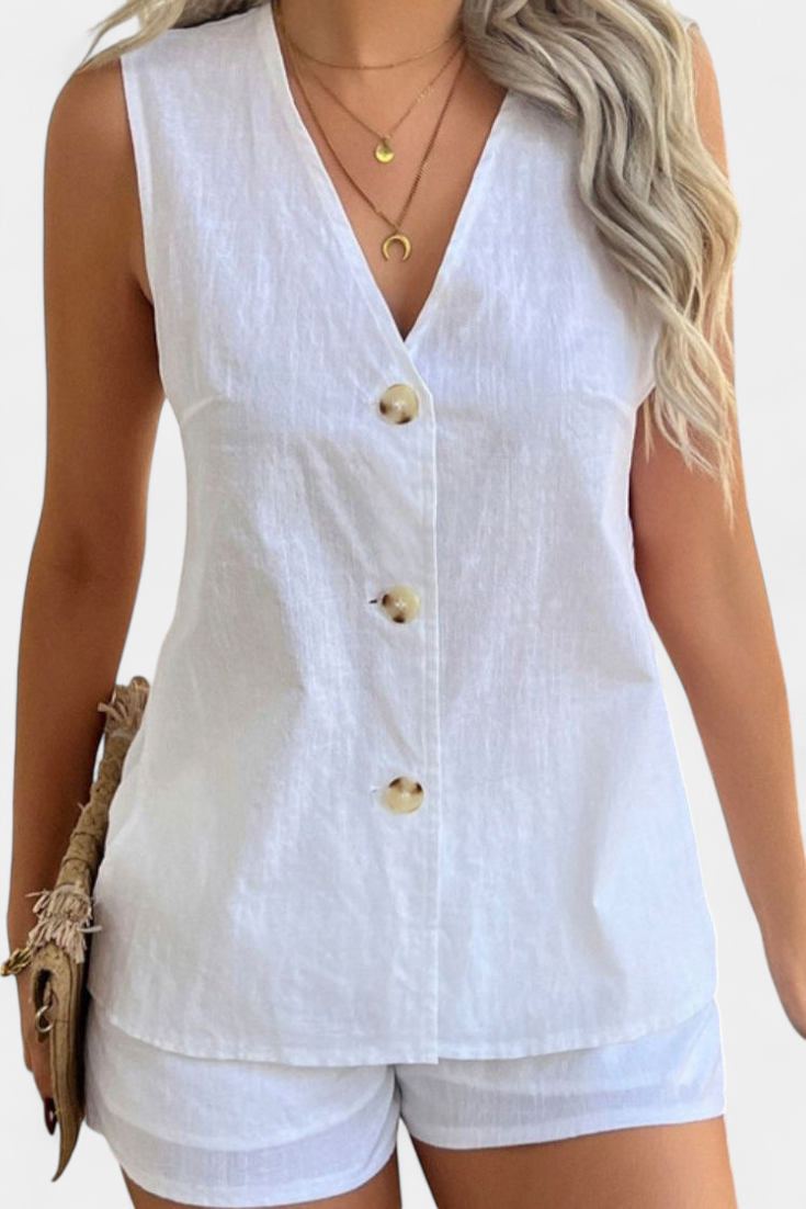 • Chemise sans manches avec décolleté en V et boutons pour un look structuré.