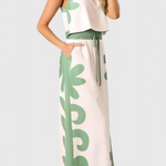 Découvrez l'élégance décontractée avec l'Ensemble Serafina, un ensemble raffiné conçu pour la liberté de mouvement. Ce deux pièces comprend un haut sans manches à coupe facile et un pantalon à jambes larges qui se déplace avec grâce et respire aisément.