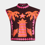 • Imprimés vibrants : Broderies de palmiers, étoiles et oiseaux tropicaux.