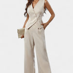 Heskia Ensemble de Gilet Sans Manches et Pantalons à Jambes Larges