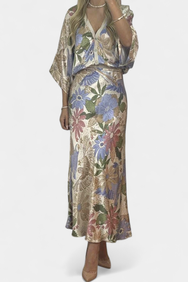 Shae Ensemble Doux de Blouse et Jupe Trompette Fleurie