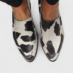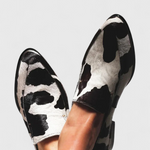 Découvrez les mocassins Macarena, alliant confort structuré et design accrocheur pour le quotidien. Leur pointe fine et finition noir et blanc inspirée du motif animal apportent une touche d'élégance moderne.