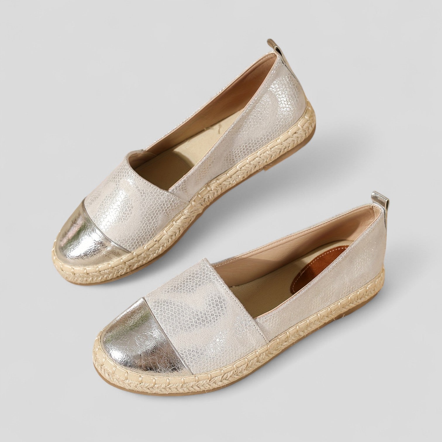 Brillance moderne avec une base naturelle : Ces alpargatas allient une touche métallique chic à une semelle en jute traditionnelle, parfaites pour des looks décontractés avec style.