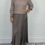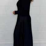 Découvrez la robe en molleton Blossy, l'alliance parfaite de chaleur et de style pour les journées fraîches. Fabriqué en doux mélange de coton, cet ensemble deux pièces inclut un top ajusté et une jupe midi plissée, offrant un look chic et confortable.