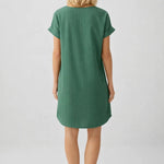 Cette robe courte séduit par sa coupe droite et son tombé fluide, idéale pour un usage quotidien tout en conservant une allure féminine et moderne.