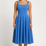 Cette robe chic premium séduit par sa coupe évasée fluide et son décolleté structuré, idéale pour une allure féminine et sophistiquée pendant les fêtes de fin d’année.