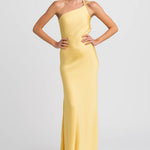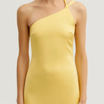 Cette création à une épaule séduit par sa coupe près du corps et sa ligne fluide qui souligne les courbes avec raffinement.