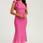 La longueur midi et la coupe près du corps offrent une allure élégante, idéale pour les occasions estivales soignées.