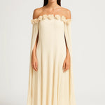 Les épaules dénudées ornées de détails délicats et la coupe plissée créent un équilibre parfait entre sophistication et poésie.
