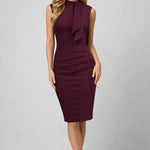 Robe midi Femme | tenue chic | col lavallière pour Automne