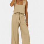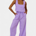 Pascuala Ensemble en Lin de Deux Pièces avec Haut Sans Manches et Pantalon Fluide