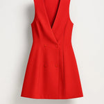 Cette création sans manches séduit par son décolleté croisé et sa coupe évasée qui structure la ligne avec élégance.