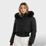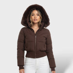 La capuche amovible ornée de fausse fourrure ajoute une touche de luxe, tandis que la coupe courte met en valeur votre silhouette avec une allure moderne.
